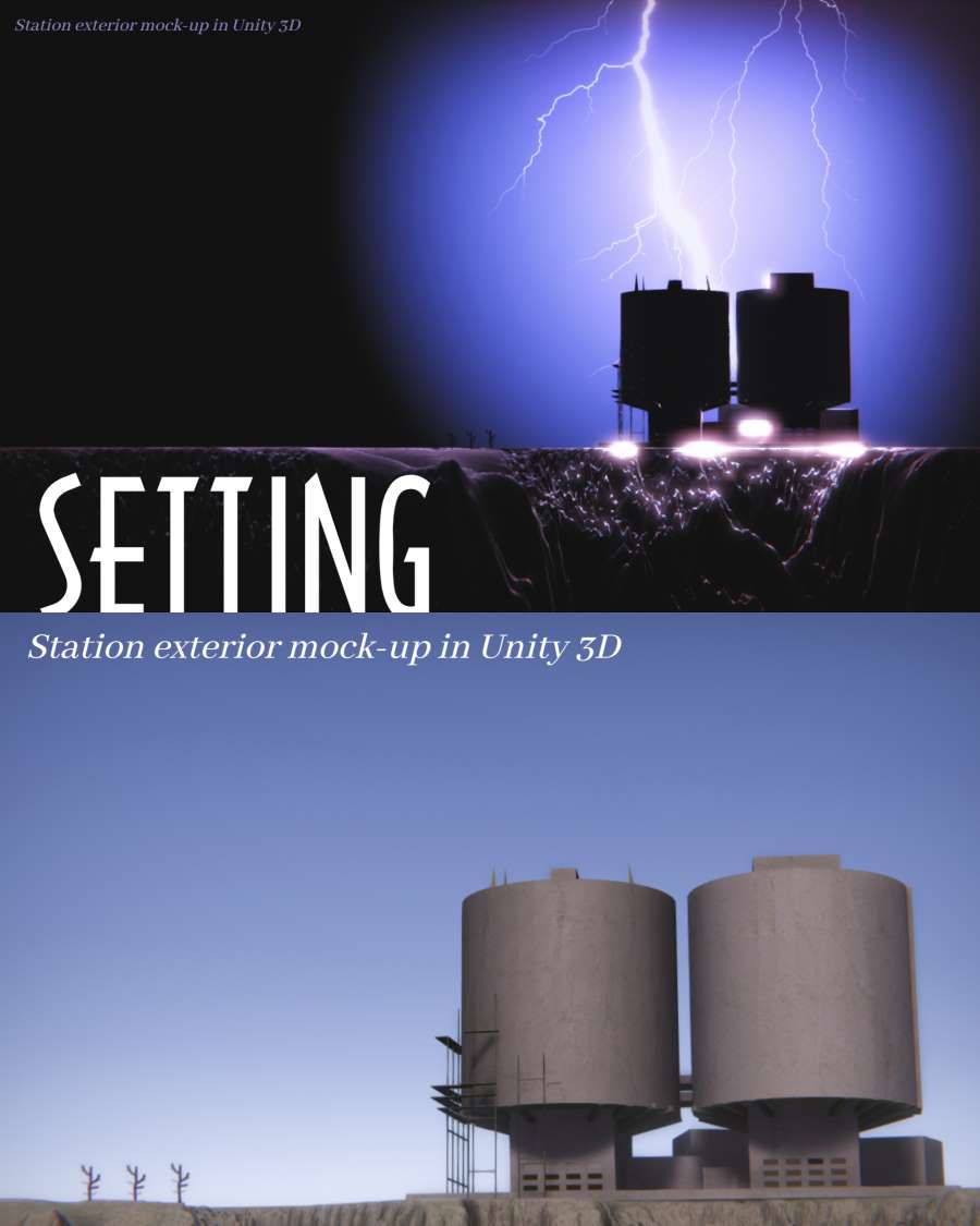 Biggs’ Station GDD (university work) mock-ups: SabreCSG, Unity. Lightning adapted from a photo by Lyoha123.